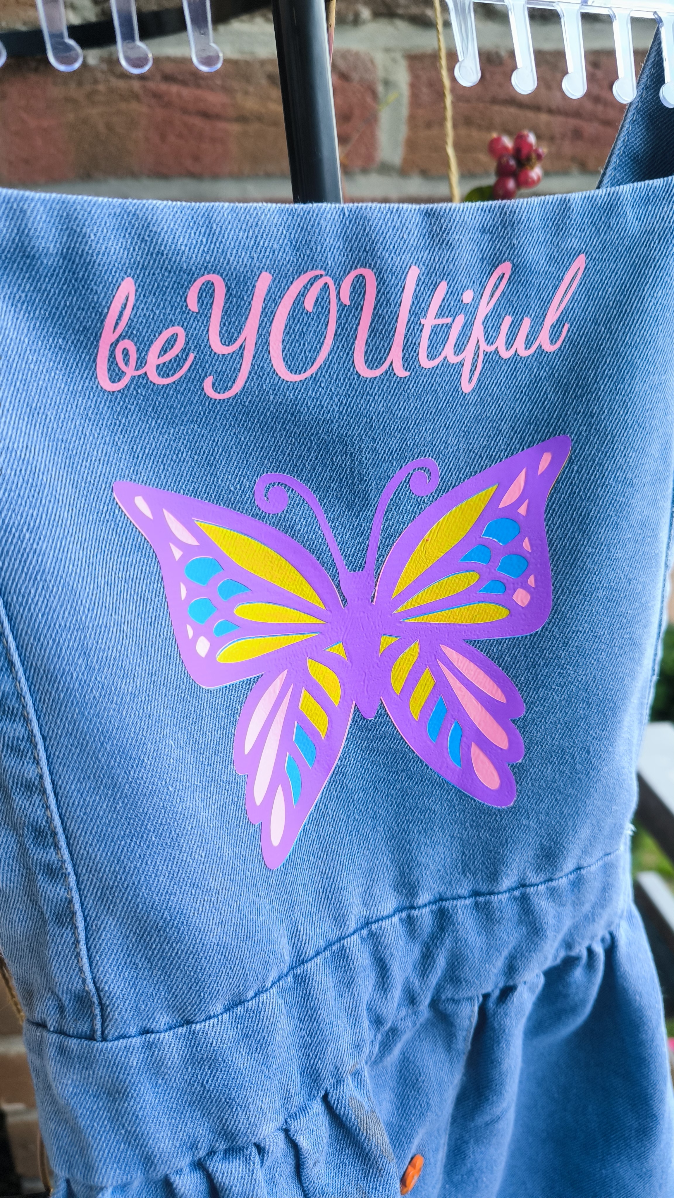 The minute I saw this butterfly on IdeaStudio In fell in love with it, and since my daughter won’t wear anything plain, I had to make her somthing on this pretty Overall skirt (dk the actual name for it lol ) , so I edited the butterfly as I wanted it to be and sorted the colors and made the Icraft do it’s magic.