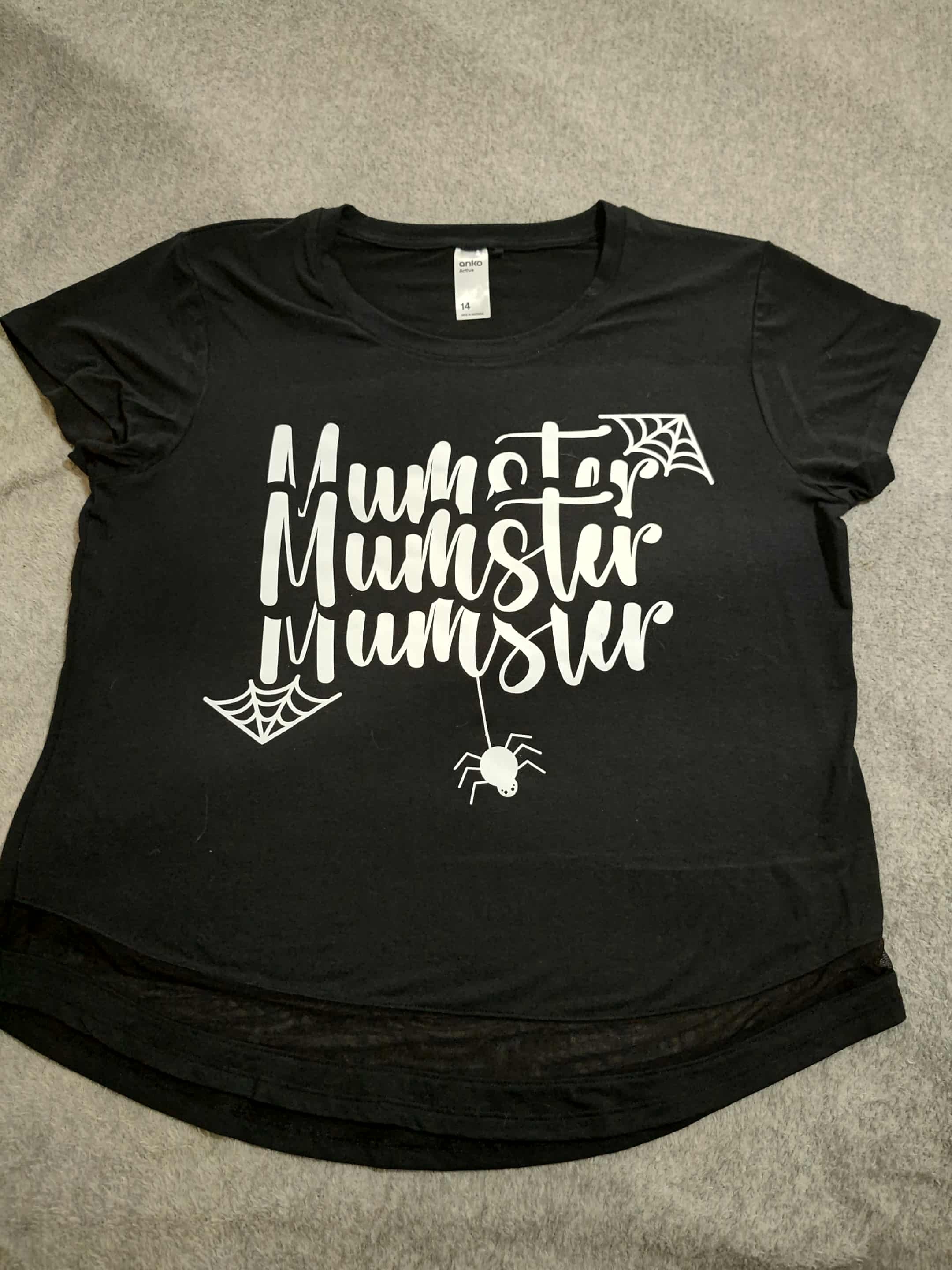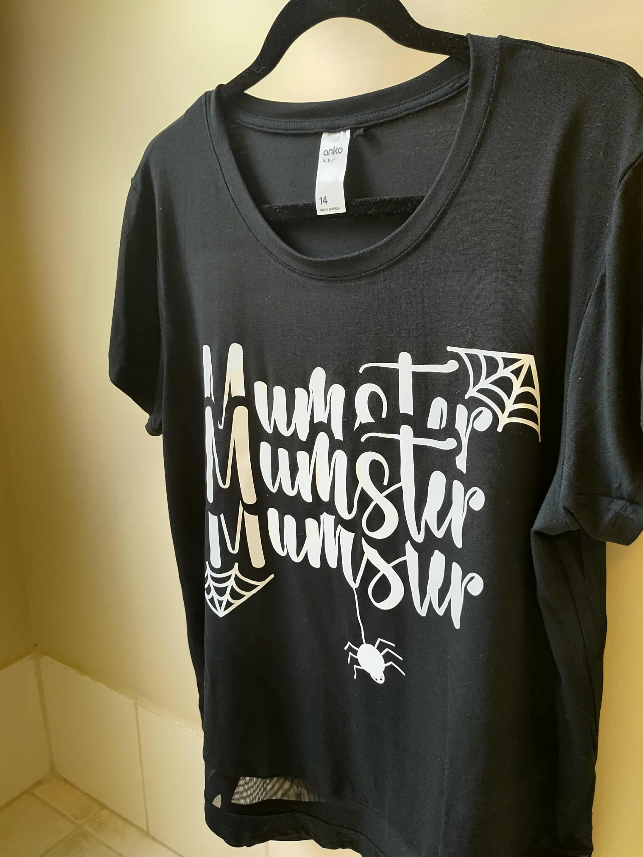 I found inspiration in other Halloween shirts, but all of them had MUM spelt MOM and we do it different in Australia, so I made my own.